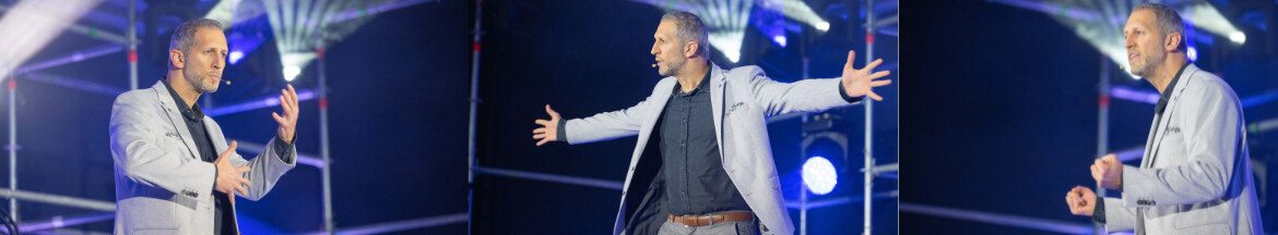 Er steht engagiert auf der Bühne und nimmt jeden mit in die Erfahrung.
