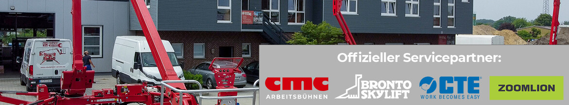 Service für Arbeitsbühnen aller Hersteller - Autorisierte Servicewerkstatt von Bronto SkyliftCMC RaupenarbeitsbühnenCTE LKW Arbeitsbühnen sowie ZOOMLION Arbeitsbühnen.