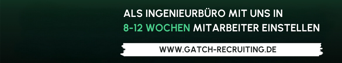 Die Gatch UG unterstützt inhabergeführte Ingenieur- und Planungsbüros mit 10 bis 50 Mitarbeitenden bei der Personalgewinnung und der Stärkung Ihrer Arbeitgebermarke. Mit einem durchdachten Recruiting-Ansatz sorgen wir für eine kontinuierliche Zufuhr qualifizierter Bewerbungen aus Ihrer Region – zuverlässig, effizient und planbar.