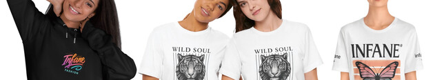 Infane die Trend Brand Nummer 1 weltweit in Bekleidung, Herrenkleidung, Frauenkleidung, Accesoires und Zubehör. Tshirts, Hoodies, Handy- und Airpodzubehör, Bluetooth Boxen, Longsleeves, Jacken und vieles mehr. Der online Shop der Zukunft mit den neusten Trends, besten Designs und top Qualität.