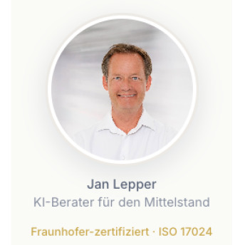 Jan Lepper hat uns geholfen, KI-Potenziale in unseren Vertriebs- und Marketingprozessen systematisch zu identifizieren. Was mich besonders überzeugt hat: Er kommt nicht mit abstrakten Folien, sondern setzt sich hin, schaut sich die realen Abläufe an und zeigt dann konkret, wo KI sofort Zeit spart. Nach dem gemeinsamen Workshop hatten wir drei umsetzbare Maßnahmen, von denen wir zwei innerhalb einer Woche umgesetzt haben. Klare Empfehlung für jeden Mittelständler, der KI nicht nur verstehen, sondern auch nutzen will.