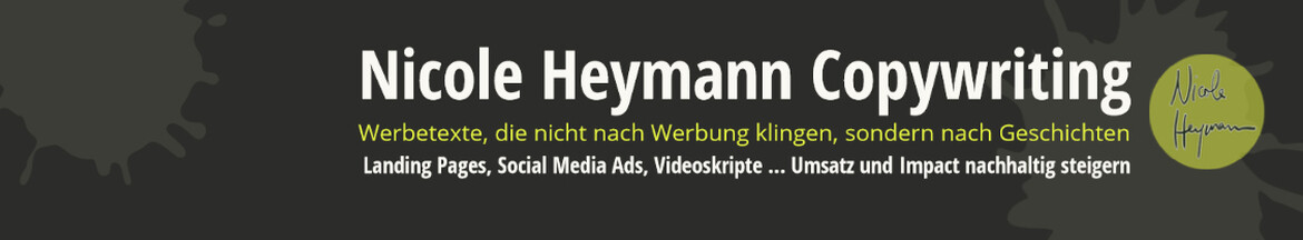 Nicole Heymann Copywriting schreibt Verkaufstexte, die Reichweite und Sales erhöhen. Die Kompetenzen aus Copywriting und über 12 Jahren kreativem Storytelling kommen zusammen, um deiner Firma eine Bühne bei seinen idealen Kunden zu bieten