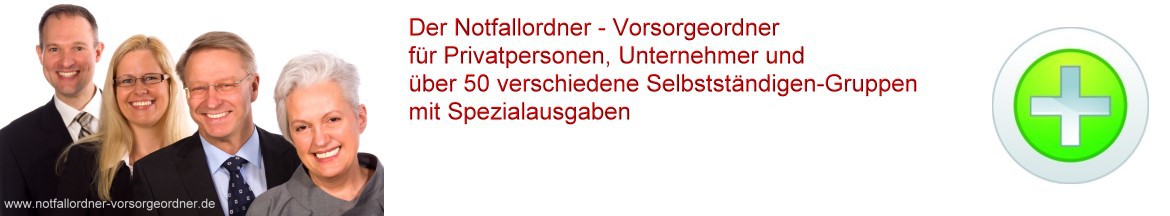 NotfallordnerVorsorgeordnerNotfallordner-VorsorgeordnerNotfallordner für UnternehmerNotfallordner für SelbstständigeNotfallordner für HandwerkerNotfallordner für SteuerberaterNotfallordner für ÄrzteNotfallordner für ZahnärzteNotfallordner für Apotheker