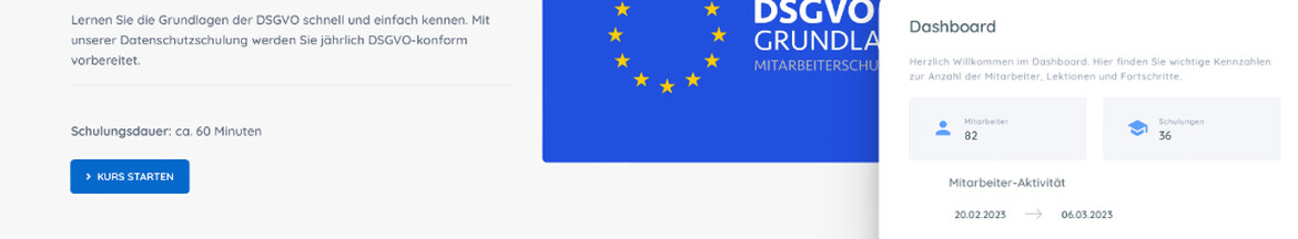 Über unsere eLearning-Plattform können Sie bequem Ihre Mitarbeiter online schulen. Zu den Themen Datenschutz, Compliance, Arbeits- und Gesundheitsschutz und viele weitere Pflicht- und Zusatzunterweisungen.