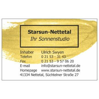 Das Sonnenstudio Starsun-Nettetal in Nettetal-Lobberich bietet seinen Kunden eine entspannende Auszeit unter hochwertigen Sonnenbänken. Mit einer modernen Ausstattung und einem freundlichen Ambiente ist das Studio der ideale Ort, um sich eine... wohlverdiente Bräunung zu gönnen. Die erfahrenen Fachkräfte des Studios sind bestens geschult und garantieren eine sichere Anwendung der Sonnenbänke von Ergoline und Megasun.