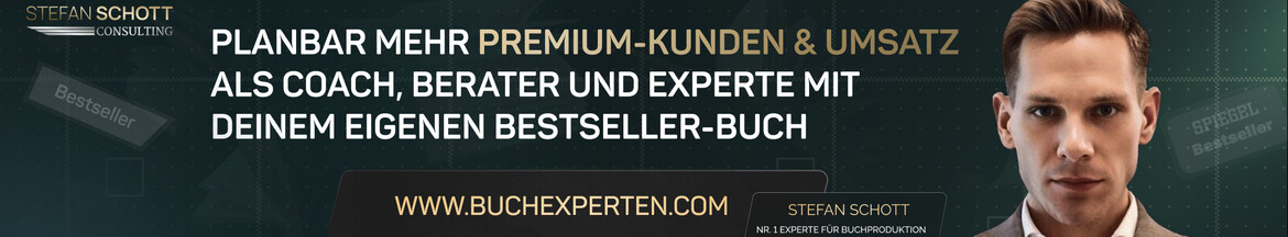 Wir schreiben dein eigenes Buch, machen es zum Nr. 1 Bestseller und positionieren dich als Marktführer in deiner Zielgruppe - Für planbar mehr hochqualifizierte Kunden und Umsatz als Coach, Berater, Trainer, Experte oder Dienstleister