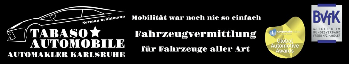 Wir sind eine Fahrzeugagentur mit Sitz in Karlsruhe. Wir beschäftigen uns mit der Vermittlung von Fahrzeugen aller Art. Durch unser Know-How und Servicekonzept bieten wir Dir beim Kauf oder Verkauf Deines Fahrzeuges eine individuelle und für Dich... stressfreie Lösung.
