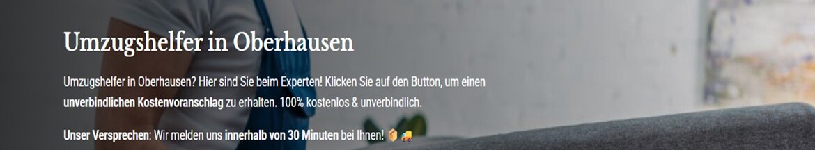 Wir unsere Umzugshelfer in Oberhausen helfen Ihnen gerne – auf unserer Seite finden Sie alles, was Sie für einen unkomplizierten Umzug in Oberhausen brauchen. Jetzt unsere Umzugshelfer anfragen & sparen!