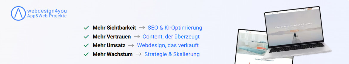 modernes, KI-optimiertes Webdesign, das dir zu mehr Kunden & Wachstum verhilft. Mein individuelles SEO-Advanced Paket für Suchmaschinenoptimierung und Generative Engine Optimization (GEO) in Kombination mit dem Content-Marketing Add-on sorgt dafür, dass deine Website oder Online-Shop sichtbar wird und Besucher in zahlende Kunden verwandelt – die Investition rentiert sich innerhalb weniger Wochen bis Monate mehrfach!