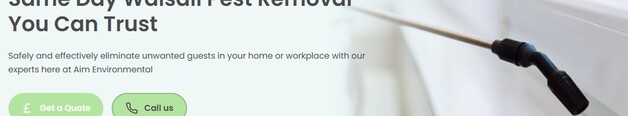 Aim Environmental Services provides pest control services to domestic and commercial customers across the West Midlands. We specialise in rodent control, wasp nest removals, bed bug treatments, pest bird proofing (netting and spiking) flea... treatments and cockroach treatments.