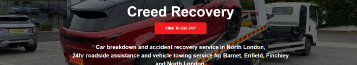 Creed Recovery provides 24/7 car recovery, towing, and roadside assistance across North London, including Barnet, Enfield, and Finchley. From breakdowns to accident recovery, our certified team ensures fast, reliable, and damage-free vehicle transport for all car types, including prestige models like Tesla and Range Rover.