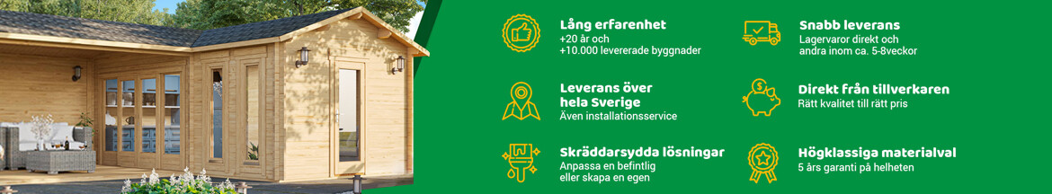 Välkommen till Hansahus24 – en komplett nätbutik med allt från attefallshus och bodar till skräddarsydda lösningar för just ditt behov. Hos oss hittar du bl.a. attefallshus som inte kräver bygglov, fritidshus för semesterboende, förråd,... bastustugor, timmerhus, garage, carportar och mycket mer. Med över 20 års erfarenhet och över 10 000 sålda stugor är vi stolta över att ha levererat hållbara byggnader över mer än två decennier.