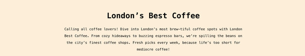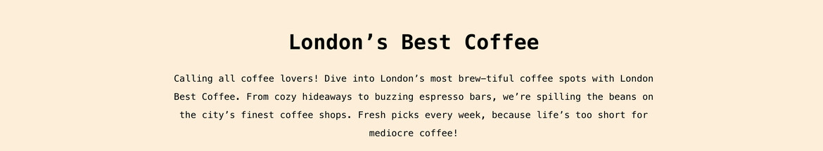 London’s Best Coffee is the ultimate guide to discovering the finest coffee shops in London. It highlights top-rated cafés known for their specialty brews, cozy and unique atmospheres, and delicious pastries. Whether you're a coffee enthusiast or... just looking for a relaxing spot, this guide covers the best places across various London neighborhoods, ensuring you never miss out on the perfect cup.
