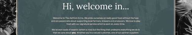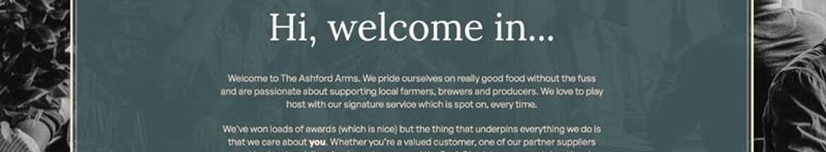 Welcome to The Ashford Arms. We pride ourselves on really good food without the fuss and are passionate about supporting local farmers, brewers and producers. We love to play host with our signature service which is spot on, every time.