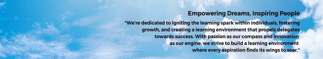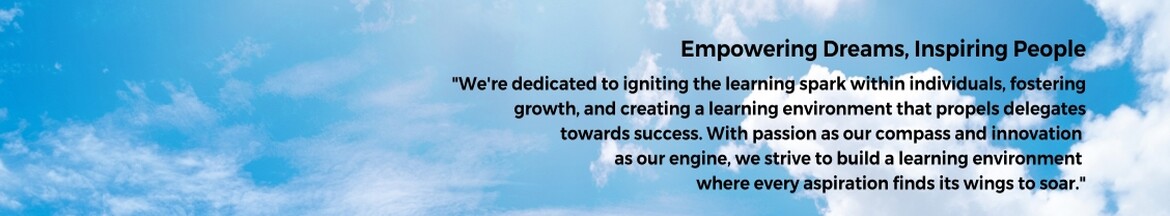 "We're dedicated to igniting the learning spark within individuals, fostering growth, and creating a learning environment that propels delegates towards success. With passion as our compass and innovation as our engine, we strive to build a learning environment where every aspiration finds its wings to soar."