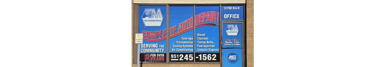 A & M Automotive is a family-owned and family-operated auto repair shop conveniently located in Lake Elsinore, CA. First opening our doors in 1992, we have provided customers with quality repairs for over 30 years. Our focus on great customer... service with all repairs has set us apart from the competition. At A & M Automotive, we use modern diagnostic tools and equipment to ensure your vehicle is serviced or repaired the right way while maintaining your manufacturer's warranty. We will only use quality parts to do replacements, and you can always trust our ASE certified technicians to get the job done. Our state-of-the-art garage also comes with four bays and five lifts, so rest assured we can handle many cars at once.