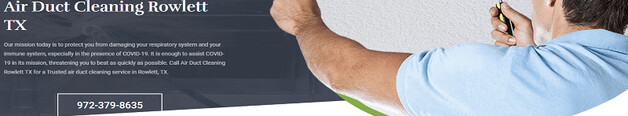 Cleaning of Air Ducts First-rate Same-Day air duct cleaning and furnace duct cleaning services are provided by Rowlett TX. They make use of the newest technology, such as a camera inspection tool that can reveal hidden... components of your ventilation system and reveal exactly what is in your breath. When you realize this, don't panic—you have professional cleaners who are skilled at thoroughly cleaning your ductwork. To get to the terminus at your air vents and eliminate every last trace of contaminants, we employ our cutting-edge equipment. You must thus have faith in our Free-Estimate furnace and air conditioning cleaning service.