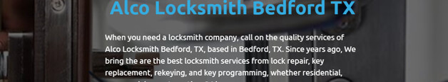 Call the professional services of Bedford, Texas-based Alco Locksmith Bedford, TX when you require a locksmith firm. Since many years ago, we have offered the best lock repair, key replacement, rekeying, and key programming services for residential, commercial, and automobile clients around the clock.