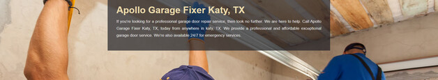 You don't need to search much farther if you need a competent garage door repair service. We can assist you. From any location in Katy, Texas, give Apollo Garage Fixer a call right now. We offer outstanding garage door service that is both professional and reasonably priced. Additionally, we offer emergency services around-the-clock.