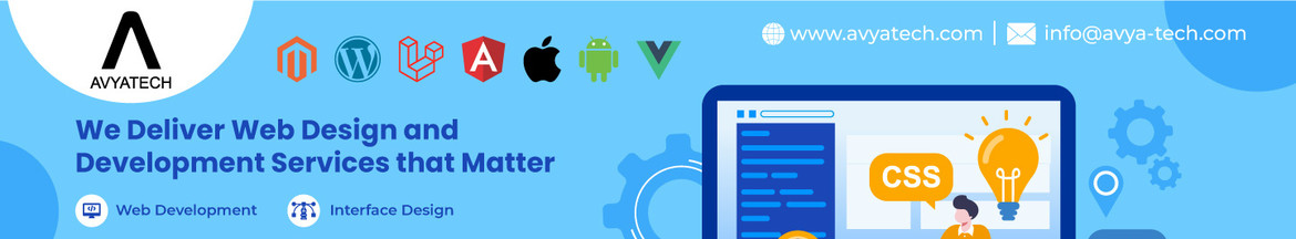 Avya Technology Pvt Ltd is one of the leading website design and development company in India that offers advanced web development services all over the world. We have more than 50+ years of combined experience and we offer the following services... in India and the US: Avya Technology Pvt Ltd is one of the leading website design and development companies in India that offers advanced web development services all over the world.