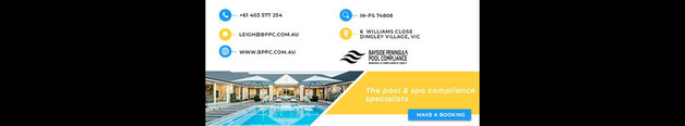 Bayside Peninsula Pool Compliance is your trusted partner for pool inspection and safety consultation services in Melbourne, Victoria. We are dedicated to ensuring the safety and compliance of swimming pools across the region. Our expert... inspectors conduct thorough assessments, provide valuable safety advice, and help you achieve compliance with local safety standards.