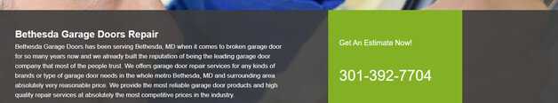 Our services are available 24 hours a day, 7 days a week to the whole residence of Bethesda, MD and nearby areas. Our 15 minute response period guarantees quick recovery from your garage door dilemmas. Call Bethesda Garage Doors representatives today to discuss your garage door repair needs.