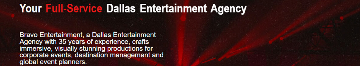 Bravo Entertainment is a Dallas-based entertainment agency with 35 years of experience creating immersive, visually stunning productions for corporate events and global planners. From live music and specialty acts to exclusive, elite performers,... Bravo delivers world-class entertainment and expert event design, bringing every vision to life with creativity, precision, and unforgettable talent.