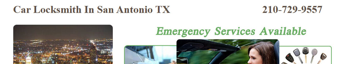 Car Locksmiths San Antonio carlocksmithssanantonio.com 210-729-9557 We are a business that prioritizes our customers' happiness. We are pleased to offer our services all year long, around-the-clock. our services: locksmiths ,emergency locksmith... locks rekey , key replacement change locks , car keys ADDRESS: 3443 S WW White Rd ,San Antonio TX 78222 call us: 210-729-9557 carlocksmithssanantonio.c