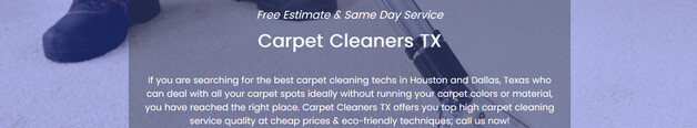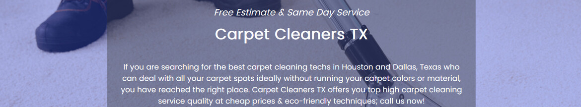 Carpets & rugs require regular cleaning & maintenance to remain clean and extend their longevity. Carpet Cleaners TX's steam cleaning team can deeply clean all your carpet spots & rinse them with less water which fastens its drying process.... Regular carpet cleaning will maintain your rugs & carpet original beauty & radiance. If you want to extend the life of your carpets, call us.