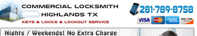 Are you a business owner who needs to have a 24 hour on call locksmith at your fingertips? Commercial locksmith highlands TX is the locksmith for you. We are dedicated to helping all of the small business owners in the city of highlands, Texas... with their locksmith needs. Having a commercial locksmith that can handle emergency locksmith services, lost office keys, master key systems.