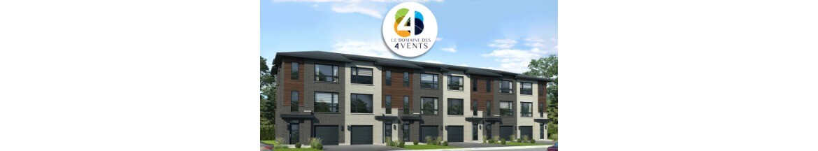Le Domaine des 4 Vents est un projet de maisons de ville neuves à vendre à Laval, dans le secteur de Duvernay Est. Magnifiques maisons de ville sur 3 étages, avec 3 chambres, garage et spacieuse cour privée. Nous offrons le meilleur rapport...
