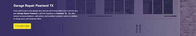Thus, contact Garage Repair Pearland if you need maintenance for your garage door opener, spring, panels, hinges, cables, rollers, or any other part. We will arrive at your Pearland, Texas home or business promptly. Give us a call at 713-429-1469 if you need your garage door serviced or installed, and we'll take care of the issue.