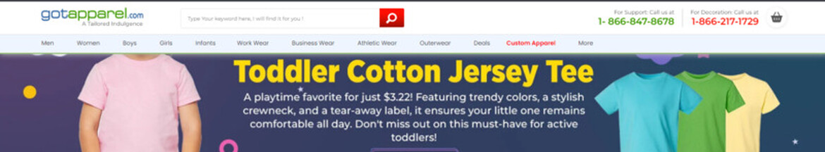 Gotapparel.com is a dynamic online clothing store which was established in 2007. We are specialized in blank apparels, embroidery, screen printing services and other promotional items. Our mission is to offer a courteous and personalized services to our clients. For us, the client is considered as part our family and that's very important.
