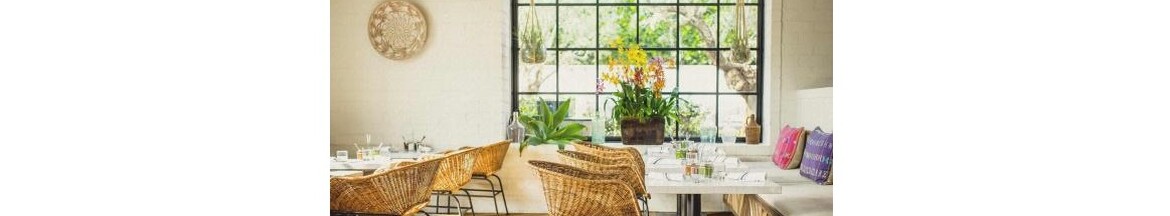 Gracias Madre is a destination for vegan Mexican food in West Hollywood. The former antique emporium showcases whitewashed brick and high ceilings with exposed beams and plenty of natural light. Bold patterned tile and reclaimed wood floors and... furniture complete this sophisticated, rustic ambience. The open floor plan transitions seamlessly onto the patio, leading to our outdoor bar that is fully equipped with all your favorites.
