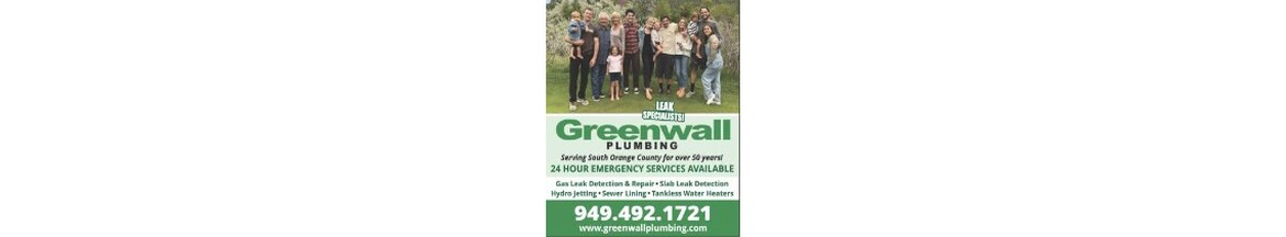When your plumbing needs expert attention, trust Greenwall Plumbing—your local, family-owned specialists proudly serving Southern Orange County for over 40 years. We offer 24-hour emergency service and comprehensive solutions, including water... heater repair and installation, clogged drain clearing, hydro jetting, camera sewer inspections, and trenchless pipe lining. Our licensed plumbers use the latest tools and technology to diagnose and resolve issues quickly and accurately. Whether it's routine maintenance or an emergency repair, we deliver efficient, high-quality service with a personal touch. Count on Greenwall Plumbing to keep your plumbing system flowing smoothly—anytime, day or night.