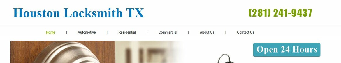Houston Locksmith TX(281) 241-9437/http://houstonlocksmithtx.com/Premier 24-Hour Locksmith Services in the Greater Houston Area!Just ask the satisfied clients we serve every day in our community; you won't find a locksmith in Houston who can do... what we can! At Locksmith in Houston, Texas, our teams of locksmiths are available 24 hours a day, 365 days a year, offering you the highest quality in automotive, residential, and commercial service any time you need. Our customers rank us highly on our satisfaction surveys, commenting particularly on our outstanding customer service, our professional and courteous attitude, and our round-the-clock work ethic.Houston Locksmith TX Services: