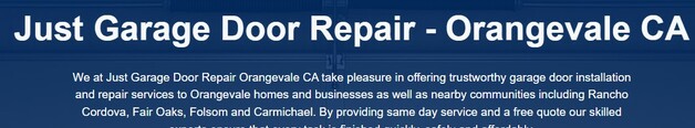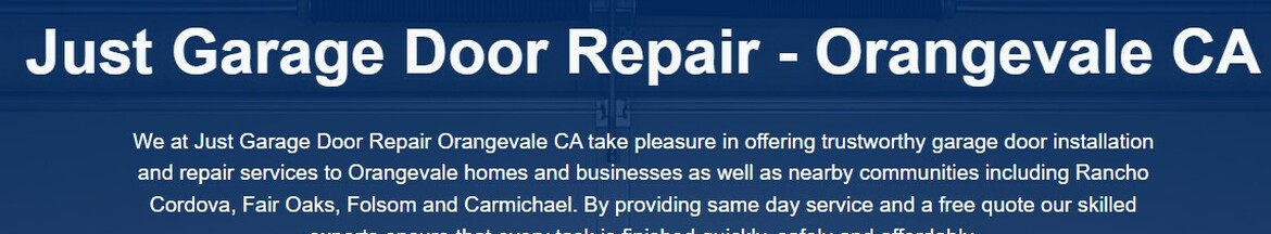 We at Just Garage Door Repair Orangevale CA take pleasure in offering trustworthy garage door installation and repair services to Orangevale homes and businesses as well as nearby communities including Rancho... Cordova, Fair Oaks, Folsom and Carmichael. By providing same day service and a free quote our skilled experts ensure that every task is finished quickly, safely and affordably. call Just Garage Door Repair Orangevale CA on (916)407-2454.