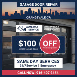 25$ discount on Garage Door Repair Services .