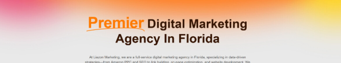 Liazon Marketing is Florida’s trusted digital agency delivering SEO, Amazon PPC, link building, and web development. We help brands increase visibility, maximize ROI, and grow revenue with data-driven strategies, local SEO expertise, and transparent performance reporting. Get a free audit today.