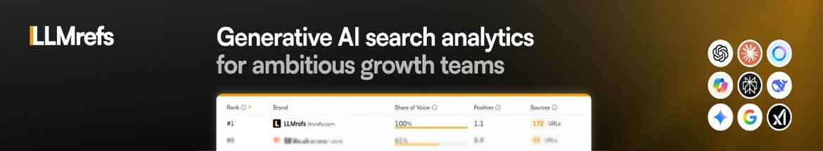 LLMrefs is an AI search analytics GEO platform that tracks brand visibility across generative AI search engines. It shows whether AI assistants like ChatGPT, Perplexity, and Gemini mention your brand when users ask questions about your industry.