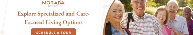 Experience active senior living in Houston, TX at Morada Cy-Fair retirement community. We offer residents with suburban senior living located just 20 miles from Metro Houston. Residents get to enjoy three distinct senior living options in one place.