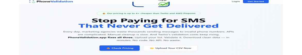 With pricing that’s up to 4× cheaper than Twilio, PhoneValidation.app offers a fast, affordable, and accurate way to clean phone lists at scale.