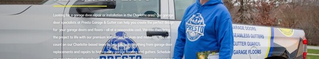 Presto Garage & Gutter provides the best Garage & Gutter services in the Charlotte area! Give us a call NOW to get started.