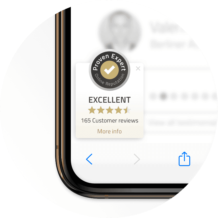 Since 2021, Google indexes mobile websites first. You are well prepared for this with the all-rounder PRO Seal: new customers are increasingly searching for service providers via smartphone. This double-sided seal combines everything a new customer would like to know about your reputation. This way, you increase clicks, contacts, and conversions via mobile search!