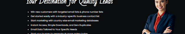 Buy email listsB2B leadsemail databasesand targeted email marketing lists to grow your business. Get verified contacts to boost outreachincrease salesand improve your marketing campaigns.