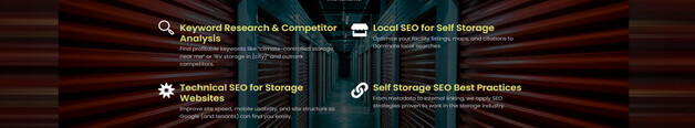 SEO for Self Storage works with self storage facilities from Weston, FL to dominate online search results. We implement AI driven SEO, Google Maps optimization, and LLM search visibility. Visit https://seoforselfstorage.com/ or call 954-287-6942 today for higher occupancy rates
