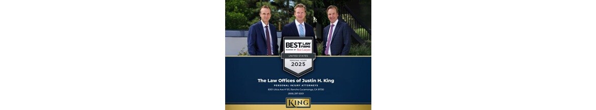 The Law Offices of Justin H. King proudly serves Rancho Cucamonga and the Inland Empire, specializing in personal injury cases like car accidents, wrongful death, catastrophic injuries, and premises liability. With over a decade of experience and... millions recovered, we deliver ethical, personalized representation tailored to your needs. Our award-winning team combines compassionate counsel with aggressive litigation to secure justice and maximum compensation. Contact us for a free consultation.