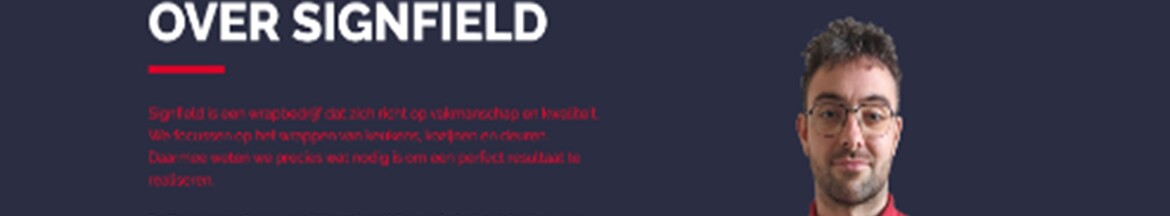 Signfield is gespecialiseerd in het wrappen van keukens, deuren en kozijnen. Met hoogwaardige folies creëren zij duurzame, stijlvolle en betaalbare transformaties voor zowel particuliere als zakelijke klanten in Nederland, met oog voor kwaliteit en vakmanschap.