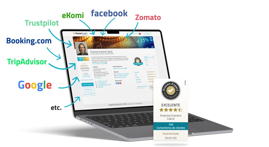 Avaliações autênticas são a forma mais eficaz de publicidade. Crie confiança e convença milhares de potenciais clientes online.